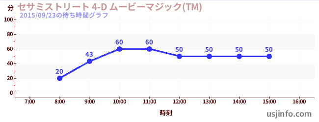 • セサミストリート 4-D ムービーマジック(TM)$B$N(B2015年09月23日の待ち時間