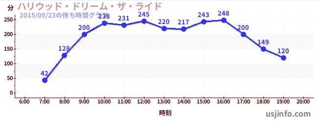 • ハリウッド・ドリーム・ザ・ライド$B$N(B2015年09月23日の待ち時間