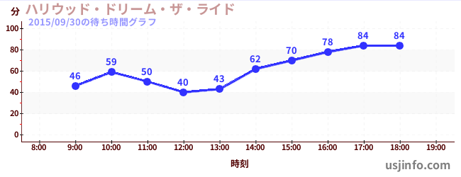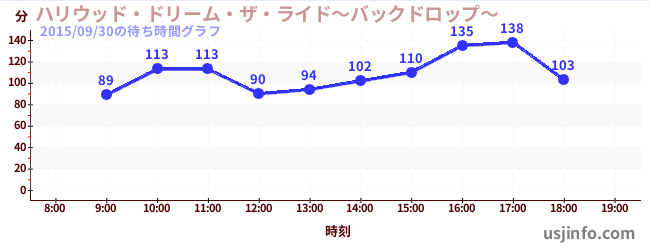 • ハリウッド・ドリーム・ザ・ライド〜バックドロップ〜$B$N(B2015年09月30日の待ち時間