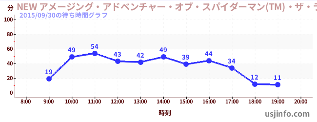 • NEW アメージング・アドベンチャー・オブ・スパイダーマン(TM)・ザ・ライド 4K3D$B$N(B2015年09月30日の待ち時間