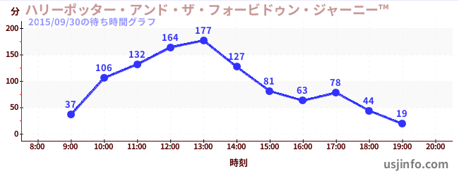 • ハリーポッター・アンド・ザ・フォービドゥン・ジャーニー™$B$N(B2015年09月30日の待ち時間