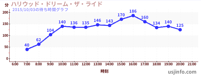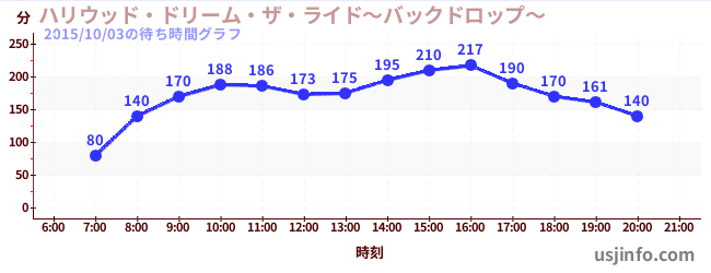 • ハリウッド・ドリーム・ザ・ライド〜バックドロップ〜$B$N(B2015年10月03日の待ち時間