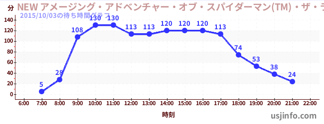 • NEW アメージング・アドベンチャー・オブ・スパイダーマン(TM)・ザ・ライド 4K3D$B$N(B2015年10月03日の待ち時間