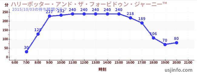 • ハリーポッター・アンド・ザ・フォービドゥン・ジャーニー™$B$N(B2015年10月03日の待ち時間