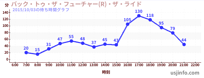 • バック・トゥ・ザ・フューチャー(R)・ザ・ライド$B$N(B2015年10月03日の待ち時間