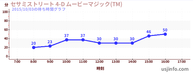 • セサミストリート 4-D ムービーマジック(TM)$B$N(B2015年10月03日の待ち時間