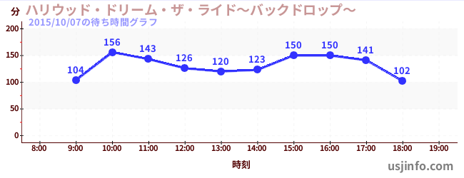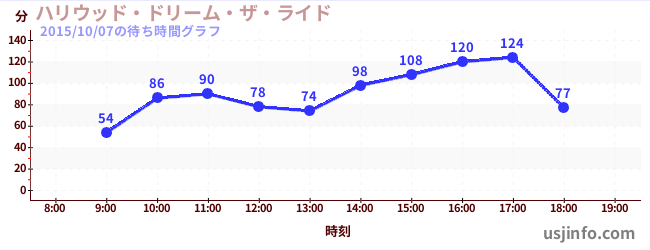 • ハリウッド・ドリーム・ザ・ライド〜バックドロップ〜$B$N(B2015年10月07日の待ち時間