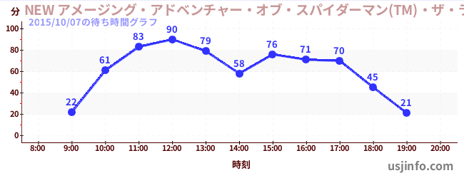 • NEW アメージング・アドベンチャー・オブ・スパイダーマン(TM)・ザ・ライド 4K3D$B$N(B2015年10月07日の待ち時間