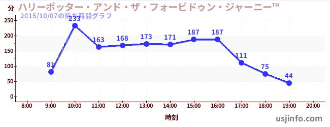 • ハリーポッター・アンド・ザ・フォービドゥン・ジャーニー™$B$N(B2015年10月07日の待ち時間