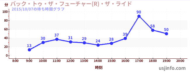 • バック・トゥ・ザ・フューチャー(R)・ザ・ライド$B$N(B2015年10月07日の待ち時間