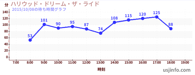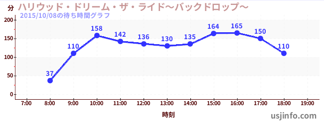 • ハリウッド・ドリーム・ザ・ライド〜バックドロップ〜$B$N(B2015年10月08日の待ち時間