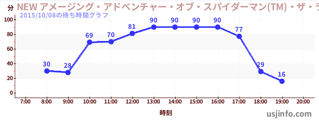 • NEW アメージング・アドベンチャー・オブ・スパイダーマン(TM)・ザ・ライド 4K3D$B$N(B2015年10月08日の待ち時間