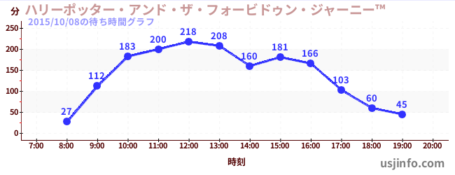 • ハリーポッター・アンド・ザ・フォービドゥン・ジャーニー™$B$N(B2015年10月08日の待ち時間