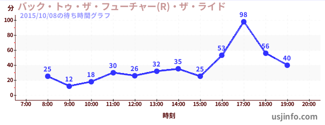 • バック・トゥ・ザ・フューチャー(R)・ザ・ライド$B$N(B2015年10月08日の待ち時間