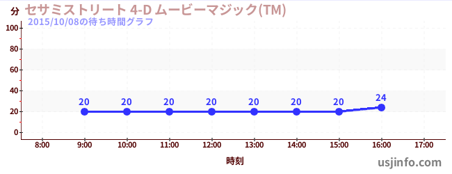 • セサミストリート 4-D ムービーマジック(TM)$B$N(B2015年10月08日の待ち時間