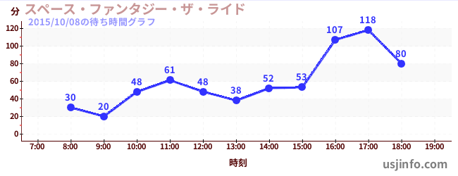 • スペース・ファンタジー・ザ・ライド$B$N(B2015年10月08日の待ち時間