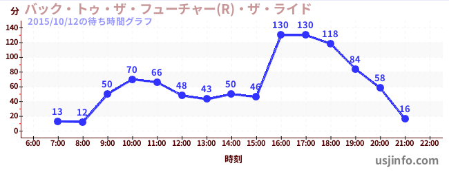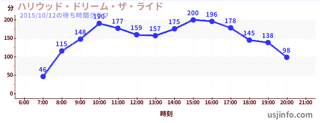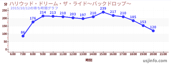• ハリウッド・ドリーム・ザ・ライド〜バックドロップ〜$B$N(B2015年10月12日の待ち時間