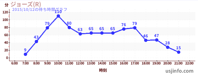 • ジョーズ(R)$B$N(B2015年10月12日の待ち時間