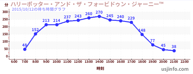 • ハリーポッター・アンド・ザ・フォービドゥン・ジャーニー™$B$N(B2015年10月12日の待ち時間