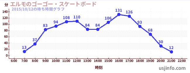 • エルモのゴーゴー・スケートボード$B$N(B2015年10月12日の待ち時間