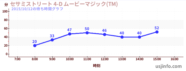 • セサミストリート 4-D ムービーマジック(TM)$B$N(B2015年10月12日の待ち時間