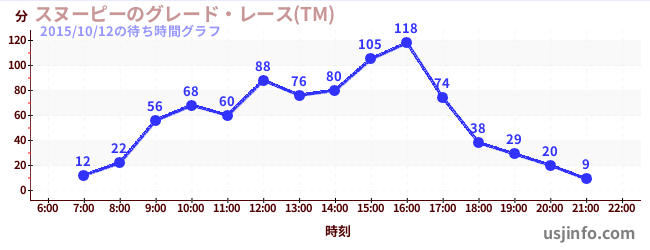 • スヌーピーのグレード・レース(TM)$B$N(B2015年10月12日の待ち時間