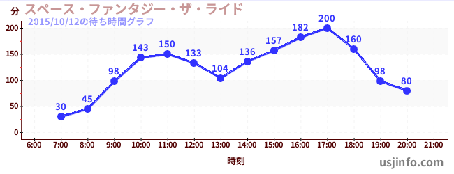 • スペース・ファンタジー・ザ・ライド$B$N(B2015年10月12日の待ち時間
