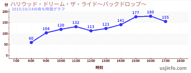 • ハリウッド・ドリーム・ザ・ライド〜バックドロップ〜$B$N(B2015年10月14日の待ち時間