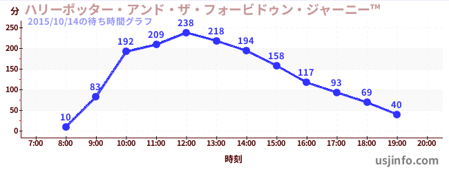 • ハリーポッター・アンド・ザ・フォービドゥン・ジャーニー™$B$N(B2015年10月14日の待ち時間