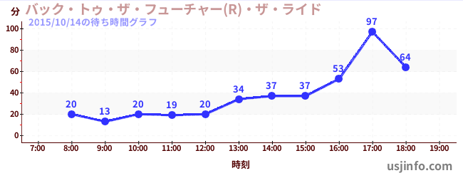 • バック・トゥ・ザ・フューチャー(R)・ザ・ライド$B$N(B2015年10月14日の待ち時間