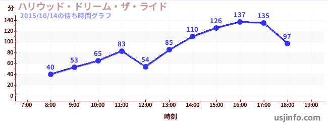 • ハリウッド・ドリーム・ザ・ライド$B$N(B2015年10月14日の待ち時間