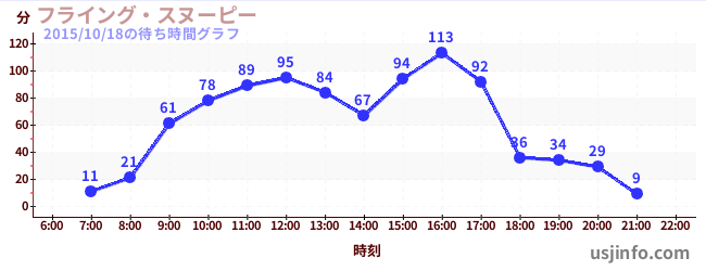 • フライング・スヌーピー$B$N(B2015年10月18日の待ち時間