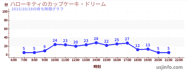 • ハローキティのカップケーキ・ドリーム$B$N(B2015年10月18日の待ち時間