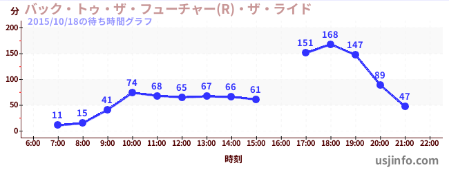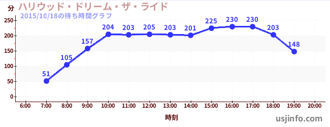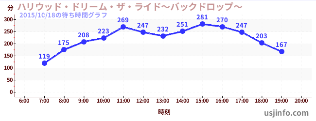 • ハリウッド・ドリーム・ザ・ライド〜バックドロップ〜$B$N(B2015年10月18日の待ち時間