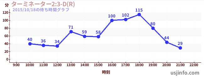 • ターミネーター2:3-D(R)$B$N(B2015年10月18日の待ち時間