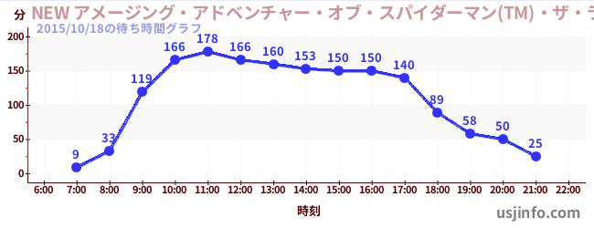• NEW アメージング・アドベンチャー・オブ・スパイダーマン(TM)・ザ・ライド 4K3D$B$N(B2015年10月18日の待ち時間