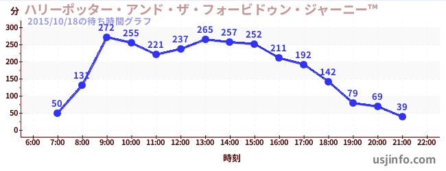 • ハリーポッター・アンド・ザ・フォービドゥン・ジャーニー™$B$N(B2015年10月18日の待ち時間