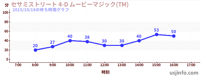 • セサミストリート 4-D ムービーマジック(TM)$B$N(B2015年10月18日の待ち時間