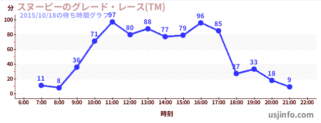 • スヌーピーのグレード・レース(TM)$B$N(B2015年10月18日の待ち時間