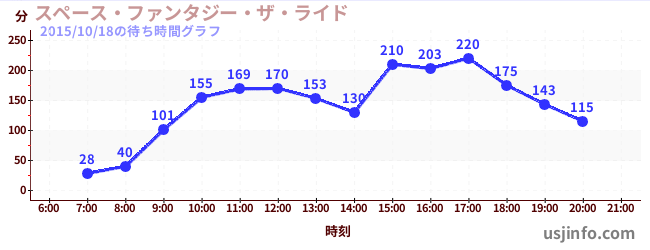 • スペース・ファンタジー・ザ・ライド$B$N(B2015年10月18日の待ち時間