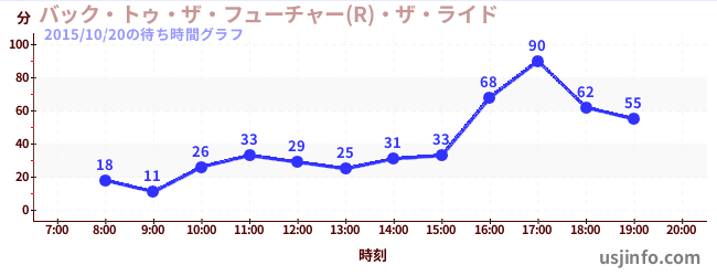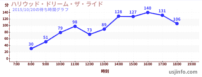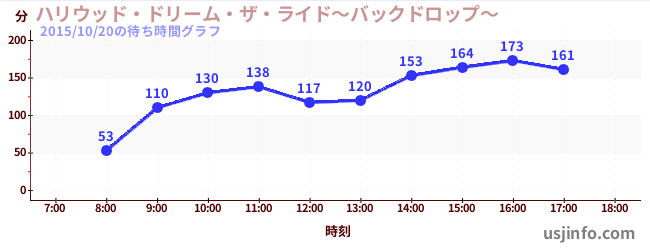 • ハリウッド・ドリーム・ザ・ライド〜バックドロップ〜$B$N(B2015年10月20日の待ち時間
