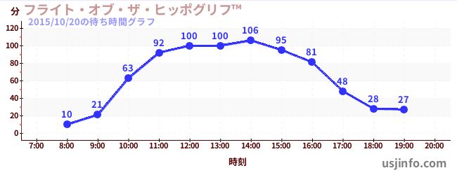 • フライト・オブ・ザ・ヒッポグリフ™$B$N(B2015年10月20日の待ち時間