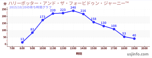 • ハリーポッター・アンド・ザ・フォービドゥン・ジャーニー™$B$N(B2015年10月20日の待ち時間