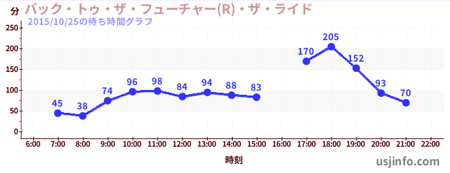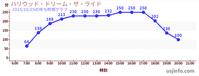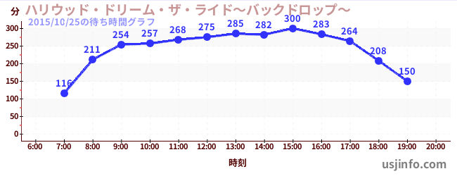• ハリウッド・ドリーム・ザ・ライド〜バックドロップ〜$B$N(B2015年10月25日の待ち時間