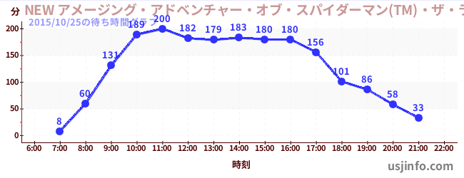 • NEW アメージング・アドベンチャー・オブ・スパイダーマン(TM)・ザ・ライド 4K3D$B$N(B2015年10月25日の待ち時間