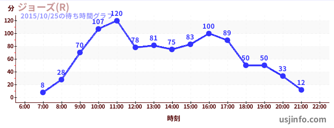 • ジョーズ(R)$B$N(B2015年10月25日の待ち時間