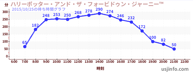• ハリーポッター・アンド・ザ・フォービドゥン・ジャーニー™$B$N(B2015年10月25日の待ち時間