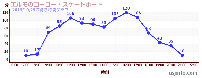 • エルモのゴーゴー・スケートボード$B$N(B2015年10月25日の待ち時間