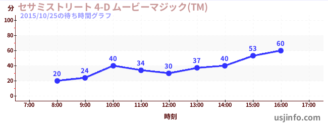 • セサミストリート 4-D ムービーマジック(TM)$B$N(B2015年10月25日の待ち時間