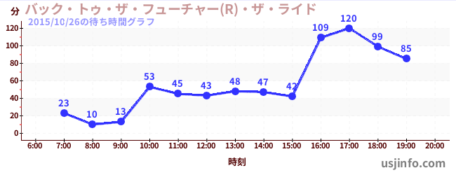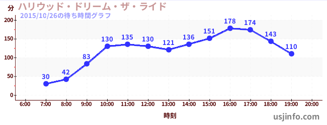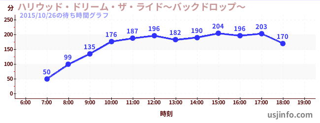 • ハリウッド・ドリーム・ザ・ライド〜バックドロップ〜$B$N(B2015年10月26日の待ち時間